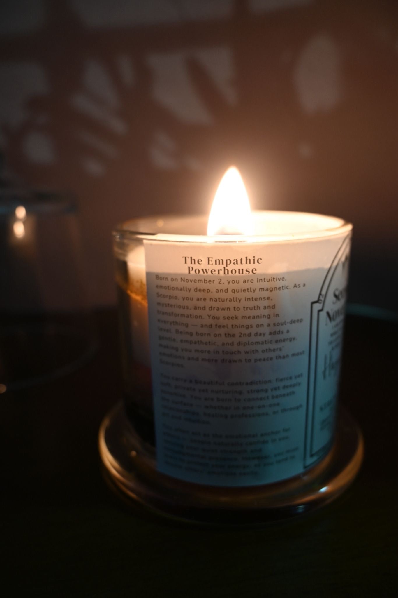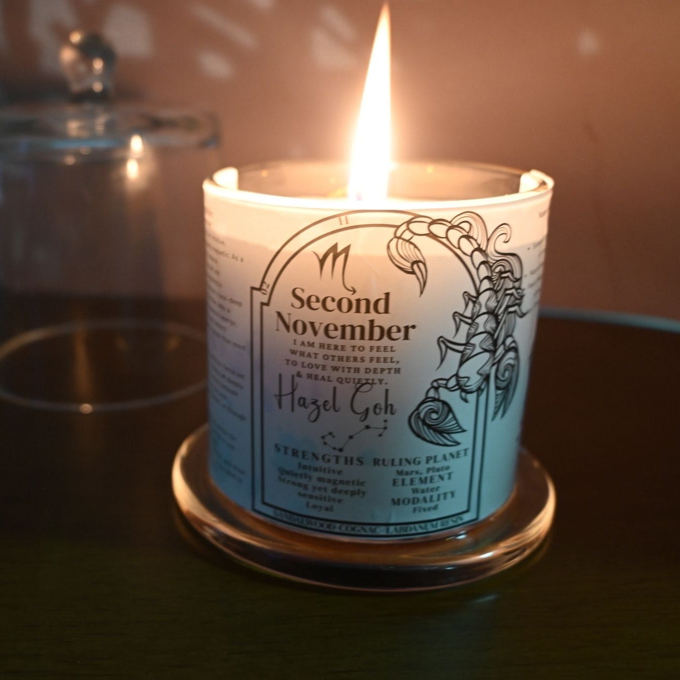 Complete with your name and cosmic traits, each candle captures the spirit of your birth chart, reminding you to live with presence and intention.