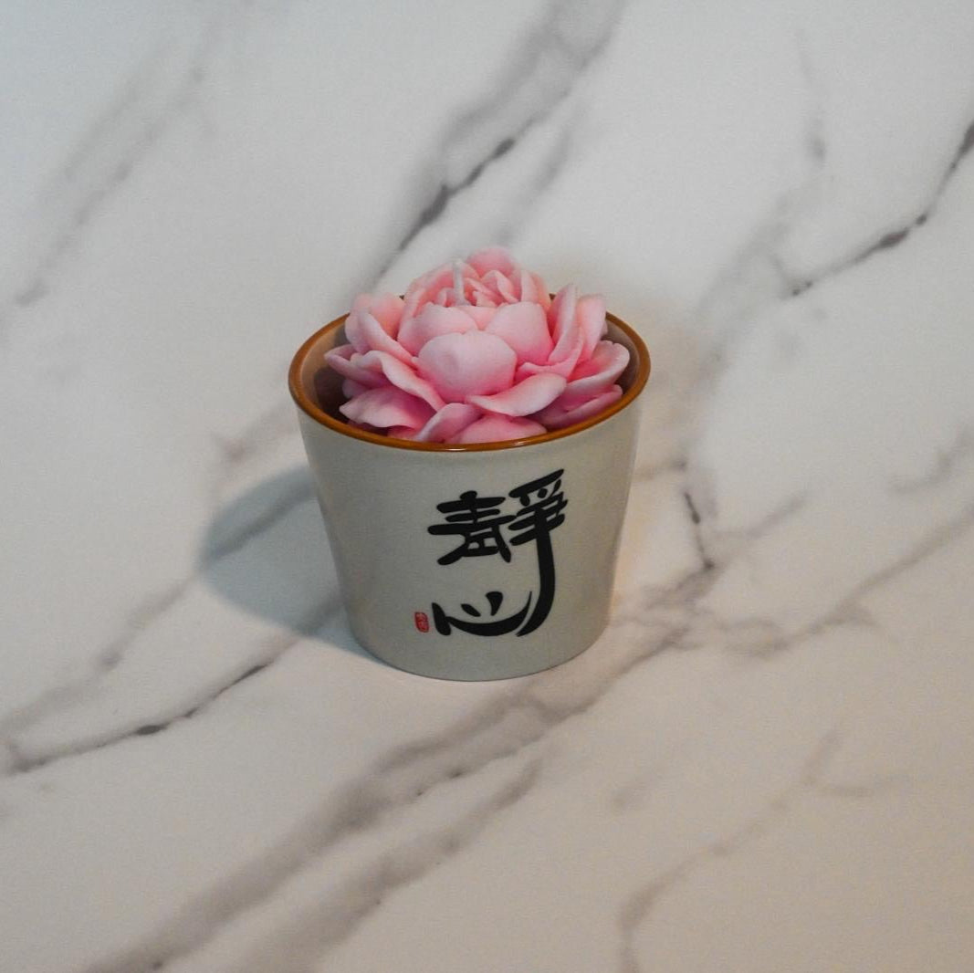 A candle shaped by stillness — soft petals in quiet bloom, held within a vessel marked with 心 (heart, spirit). Silent Grace is a reminder that true beauty lies in calm presence, where light and fragrance meet in harmony. Each flame flickers gently, carrying serenity into the space it touches.